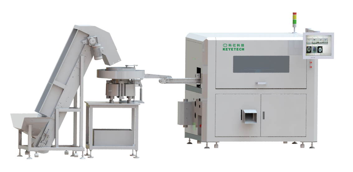 The material handling equipment supporting the fully automatic lid detection equipment from Keyi Technology adopts a horizontal material handling structure. The horizontal material handler spreads or stacks the lids horizontally in the storage bin, and then smoothly feeds them into the detection line through a conveyor or grasping mechanism. With its large storage capacity, it can meet the demand for continuous large-scale feeding, especially suitable for products such as regular round lids that are easy to spread, stack, and stably convey. The horizontal structure also has advantages such as high takt time, stable operation, and convenient maintenance, providing reliable feeding support for high-speed detection.